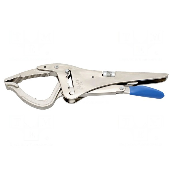 Szczypce zaciskowe marki UNIOR zostały wykonane ze stali narzędziowej. Narzędzie charakteryzuje się długością całkowitą wynoszącą 270mm oraz maksymalnym rozwarciem szczęk na poziomie 120mm.
