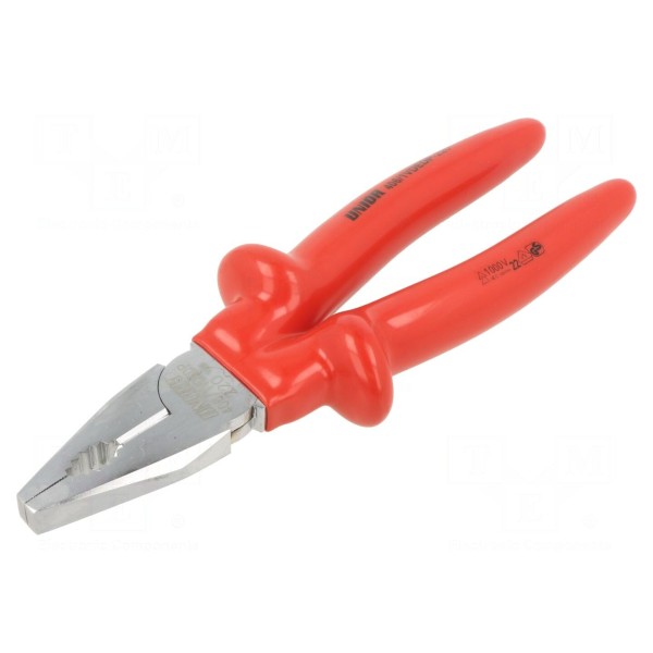 Szczypce uniwersalne UNIOR 406/1VDEDP to izolowane narzędzie ręczne wykonane ze stali węglowej. Konstrukcja charakteryzuje się kutą, utwardzaną oraz chromowaną główką, co wpływa na trwałość mechaniczną urządzenia podczas codziennej eksploatacji.