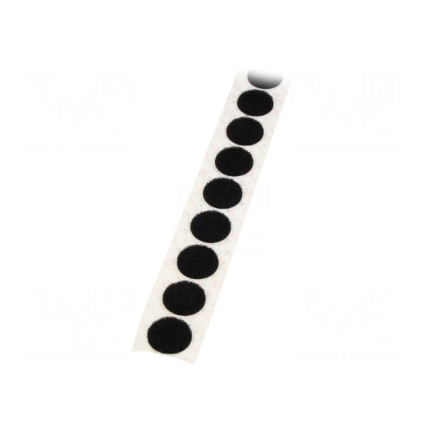 Produktem jest taśma rzepowa w formie punktów o średnicy 22 mm, przeznaczona do mocowania różnych elementów. Wykonana w wersji pętelka, taśma charakteryzuje się czarnym kolorem i jest wyposażona w klej kauczukowy.