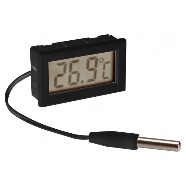 Cyfrowy miernik temperatury przeznaczony do montażu panelowego umożliwia pomiar w zakresie od –50 do 100°C. Urządzenie charakteryzuje się rozdzielczością pomiarową wynoszącą 0,1°C oraz dokładnością ±1°C.