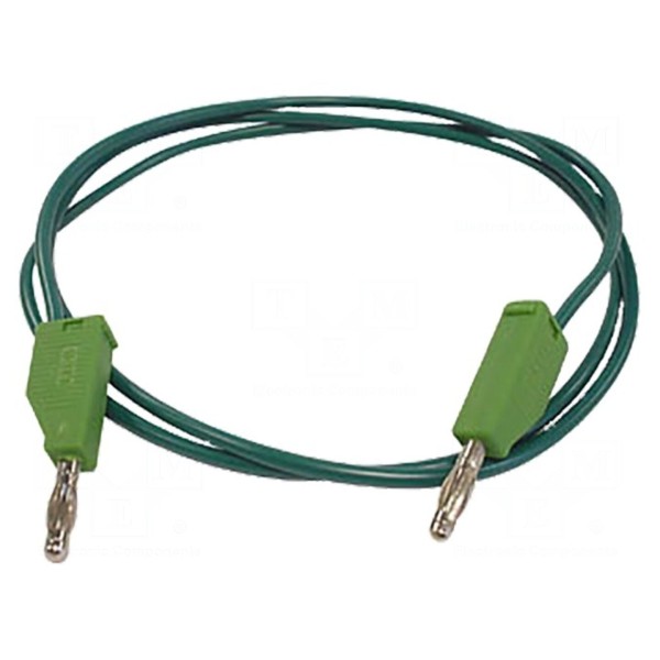 Przewód pomiarowy o długości 1 m wyposażony w wtyki bananowe 4 mm umieszczone po obu stronach. Konstrukcja złącza obejmuje dodatkowo gniazdo osiowe 4 mm, co zwiększa możliwości połączeniowe w układach pomiarowych.