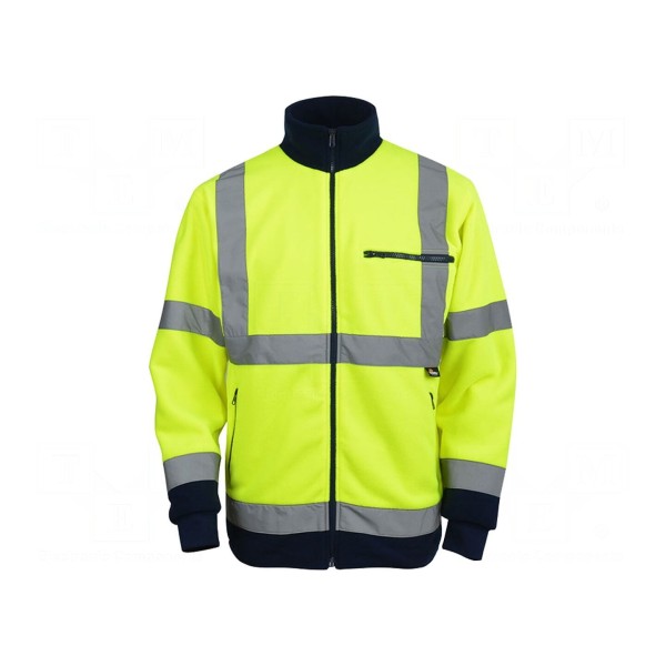 Polar ostrzegawczy VIZWELL w rozmiarze XXXL charakteryzuje się kolorystyką żółto-granatową. Odzież została zaprojektowana z uwzględnieniem właściwości zapewniających intensywną widoczność użytkownika w warunkach roboczych.