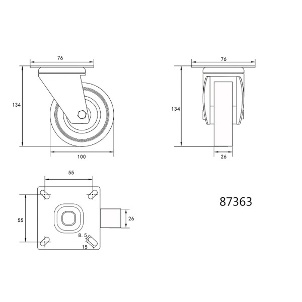 KÓŁKO SKRĘTNE Z SZARĄ GUMĄ 100MM 87363