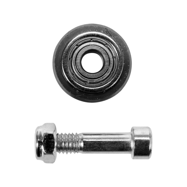 Wyposażone w łożysko, w komplecie oś fi 6 mm z nakrętką.