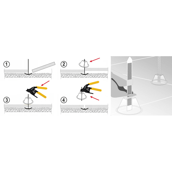 System pasków i kubków pozwala uzyskać równą powierzchnię i zapobiega przesunięciom płytek podczas zasychania zaprawy.