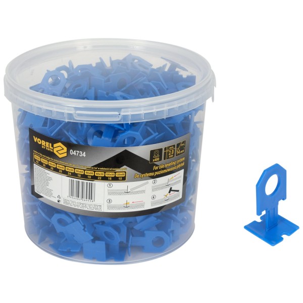 SYSTEM, KLIPSY DO POZIOMOWANIA PŁYTEK 2MM W WIADERKU 400SZT 04734