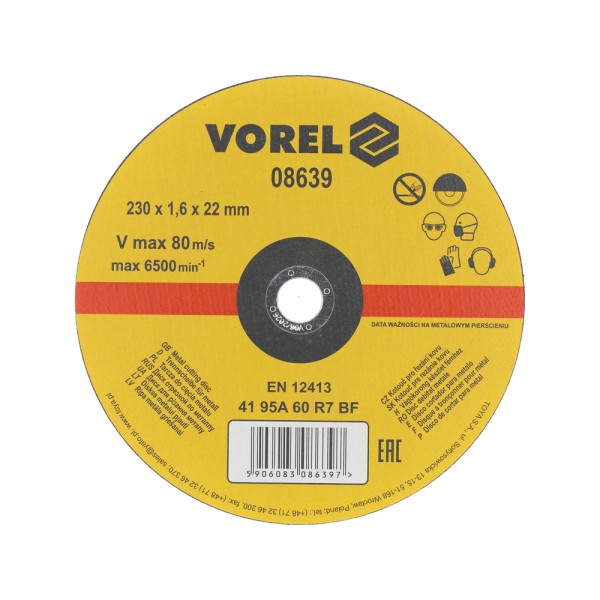 TARCZA DO CIĘCIA METALU 230X1,6X22 08639 TARCZA DO CIĘCIA METALU 230X1,6X22 08639 TARCZA DO CIĘCIA METALU 230X1,6X22 08639