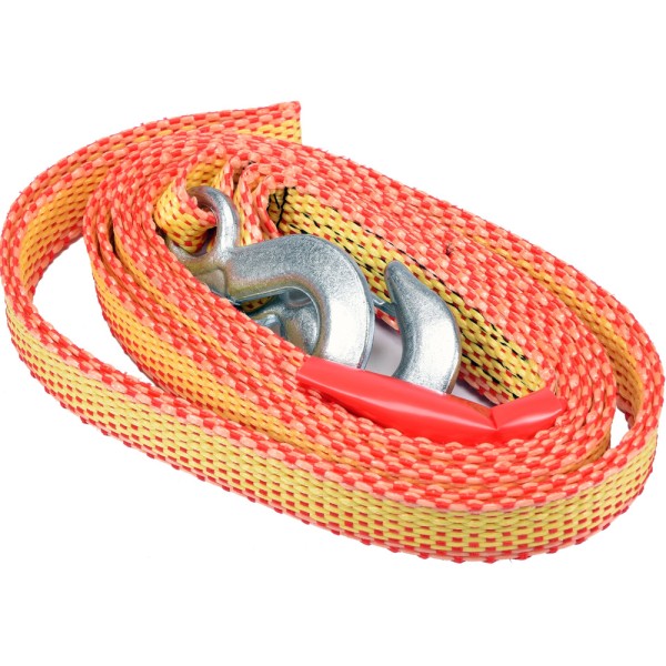 Taśma o długości 4 mb i wytrzymałości 1200 daN przeznaczona do holowania pojazdów o dopuszczalnej masie całkowitej do 1500 kg. Zakończona po obu stronach hakami z zabezpieczeniem przed wypięciem.