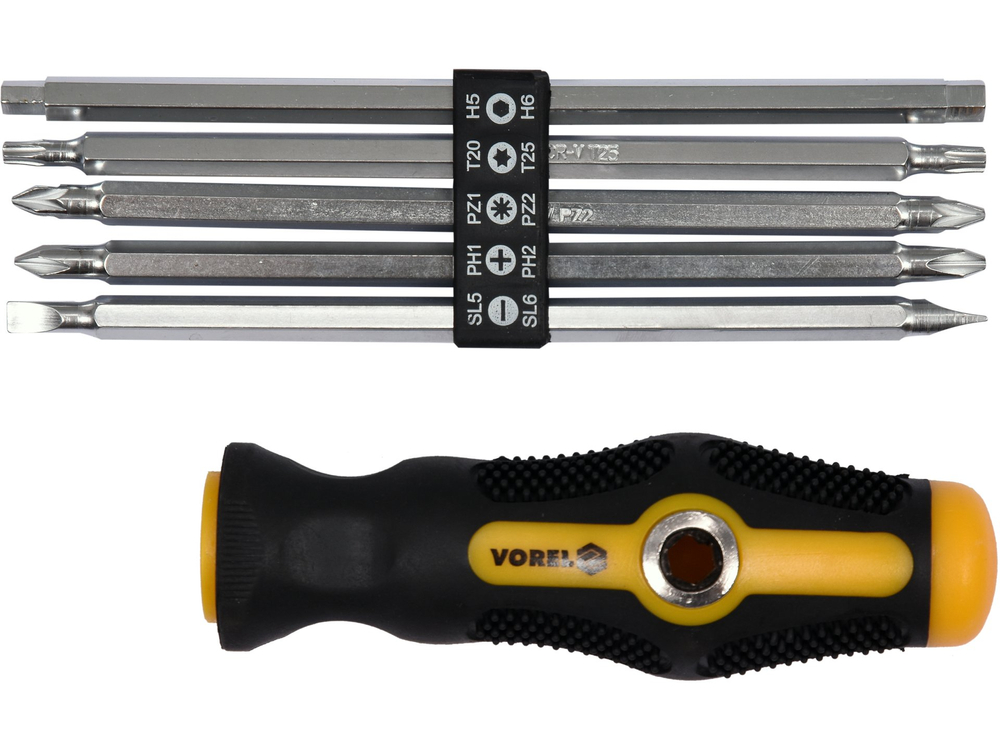 • 6-elementowy zestaw z dwustronnymi końcówkami i rękojeścią