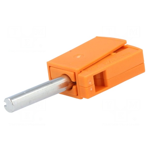 Złącze bananowe 4mm, wtyk, 20A / 42V, kolor pomarańczowy