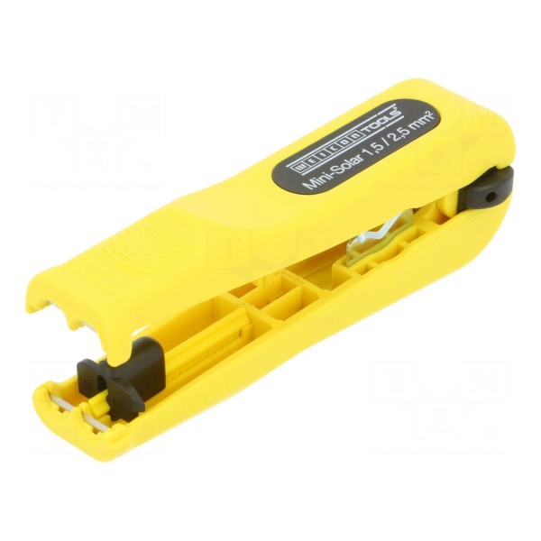 Narzędzie przeznaczone jest do usuwania izolacji z przewodów solarnych o przekroju 1,5mm² oraz 2,5mm². Konstrukcja umożliwia precyzyjne przygotowanie końcówek kabli dedykowanych do systemów fotowoltaicznych.