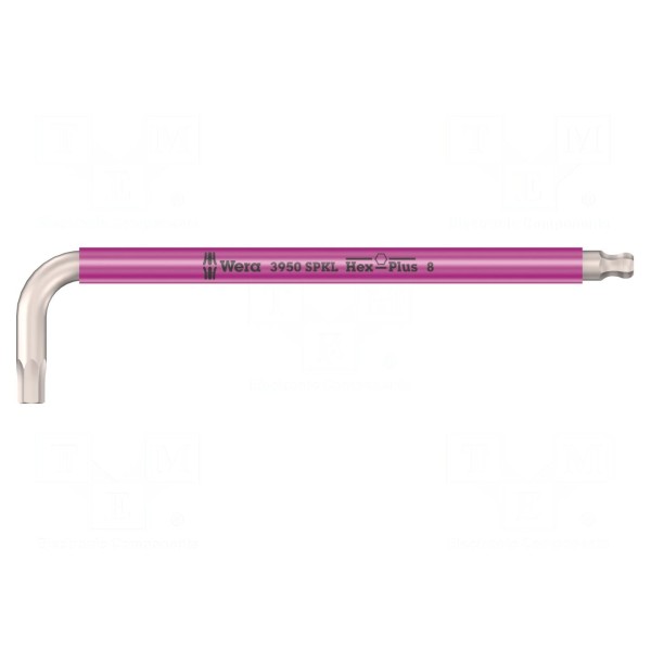 Klucz imbusowy typu HEX 8mm charakteryzuje się konstrukcją Hex-Plus z profilem kulistym, co pozwala na pracę pod kątem. Narzędzie wykonano ze stali nierdzewnej, a jego całkowita długość wynosi 195 mm.