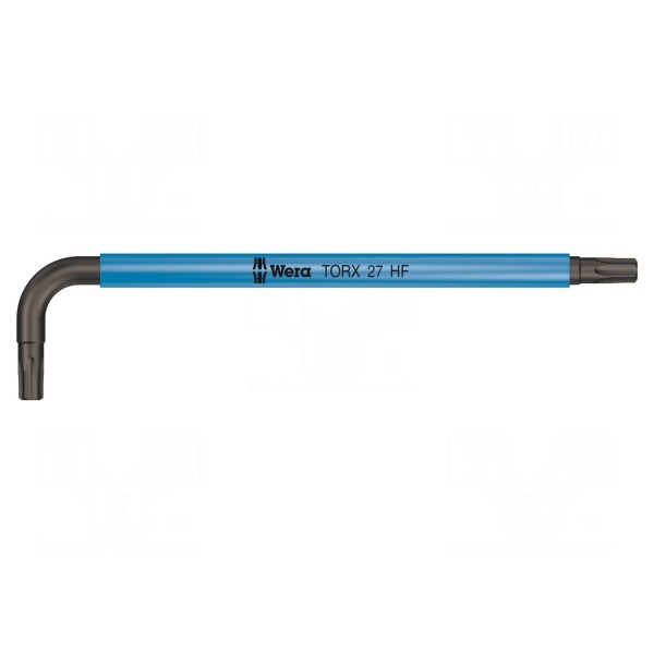 Klucz typu Torx w rozmiarze TX27 o długości całkowitej 112 mm wykonany został ze stali. Produkt został wyposażony w funkcję przytrzymywania wkrętów, co ułatwia prowadzenie prac montażowych w trudno dostępnych miejscach.