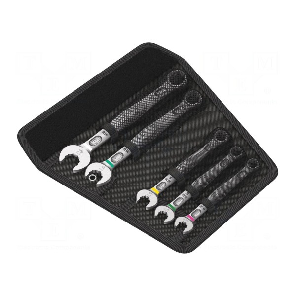 Zestaw narzędzi zawiera 10 elementów typu płasko-oczkowego przeznaczonych do prac serwisowych przy rowerach. W komplecie znajdują się klucze o rozmiarach 8 mm, 9 mm, 10 mm, 13 mm oraz 15 mm.