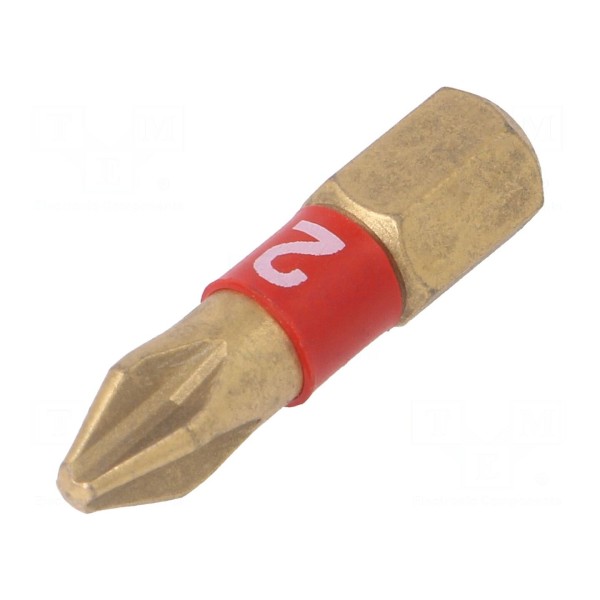Końcówka wkrętakowa typu Phillips o rozmiarze PH2 przeznaczona jest do współpracy z uchwytami o gnieździe 1/4" oraz typie mocowania D6,3mm. Element charakteryzuje się długością całkowitą wynoszącą 25mm.
