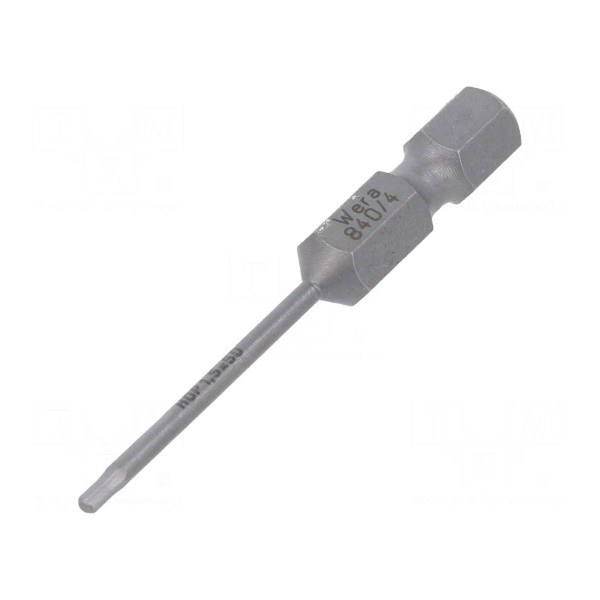 Końcówka wkrętakowa typu imbus przeznaczona jest do pracy z gniazdami o rozmiarze HEX 1,5mm. Element posiada całkowitą długość wynoszącą 50mm.