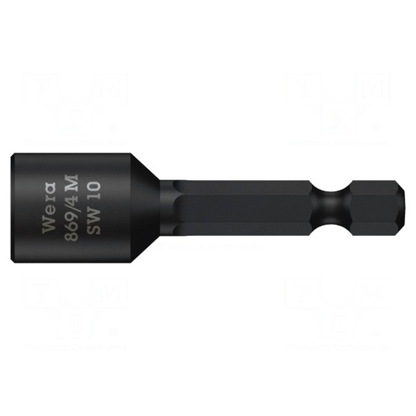 Końcówka wkrętakowa typu nasadka 6-kątna przeznaczona jest do współpracy z wkrętarkami i narzędziami wyposażonymi w uchwyt o rozmiarze 1/4" (typ F6,3mm). Element posiada gniazdo HEX o rozmiarze 3/8".