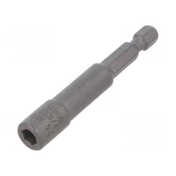 Końcówka wkrętakowa marki WERA o typie nasadki 6-kątnej przeznaczona jest do współpracy z elementami o rozmiarze HEX 5,5 mm. Narzędzie zostało wyposażone w uchwyt o rozmiarze 1/4" typu F 6,3 mm.