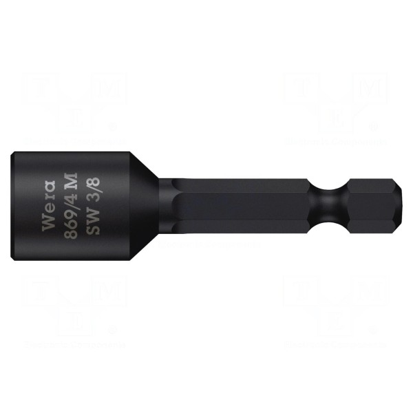 Końcówka wkrętakowa typu nasadka 6-kątna przeznaczona jest do współpracy z wkrętakami wyposażonymi w uchwyt o rozmiarze 1/4" (F6,3mm). Element posiada gniazdo w rozmiarze HEX 3/8".