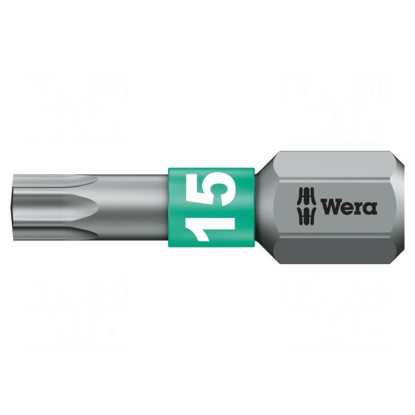 Końcówka wkrętakowa typu Torx o rozmiarze TX15 przeznaczona jest do współpracy z elementami złącznymi o odpowiednim profilu. Akcesorium posiada gniazdo uchwytu w rozmiarze 1/4" i jest dostosowane do montażu w uchwytach typu D6,3mm.