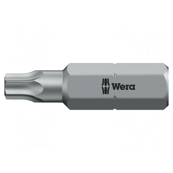 Całkowita długość elementu wynosi 25 mm. Konstrukcja końcówki zapewnia wymaganą stabilność podczas pracy z odpowiednio dopasowanymi gniazdami wkrętów.