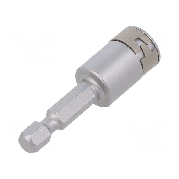 Końcówka wkrętakowa posiada nasadkę 6-kątną o rozmiarze gniazda HEX 8mm. Narzędzie jest przystosowane do pracy z uchwytem o standardzie F6,3mm oraz rozmiarze 1/4".