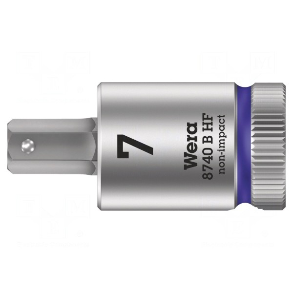 Nasadka typu imbus Hex-Plus o rozmiarze 7 mm przeznaczona jest do współpracy z uchwytami o rozmiarze 3/8". Narzędzie wykonano ze stali chromowo-wanadowej, a jego powierzchnię wykończono chromowaniem.