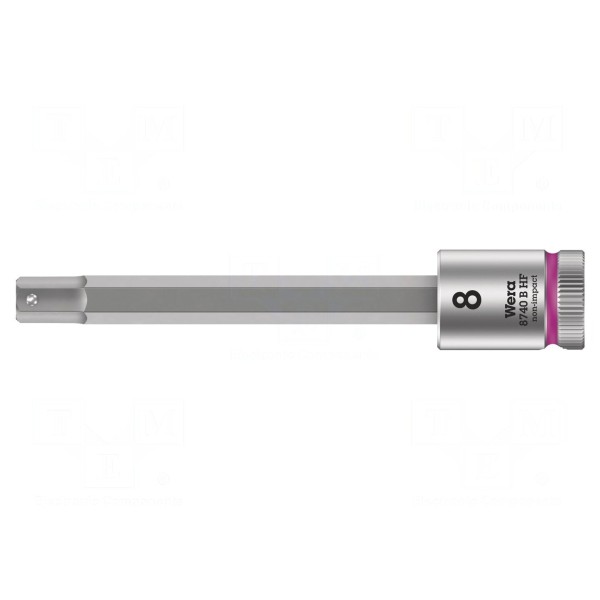Nasadka typu imbus Hex-Plus przeznaczona jest do współpracy z kluczami z gniazdem o rozmiarze 3/8". Narzędzie posiada rozmiar końcówki HEX 8mm oraz długość całkowitą wynoszącą 100mm.