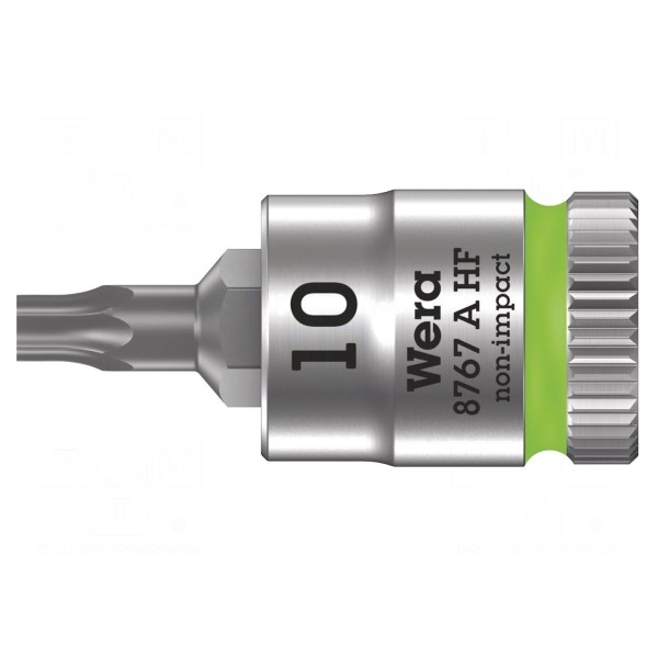 Nasadka typu nasadowego przystosowana jest do pracy z gniazdami o rozmiarze 1/4". Element o rozmiarze grota TX10 został wykonany ze stali chromowo-wanadowej i wykończony chromowaną powłoką.
