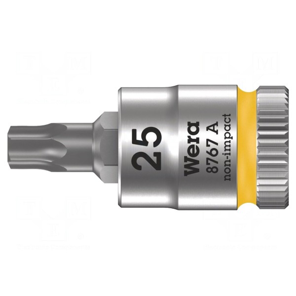 Nasadka typu nasadowego przeznaczona jest do pracy z grotami typu Torx w rozmiarze TX25. Element charakteryzuje się rozmiarem gniazda uchwytu wynoszącym 1/4".