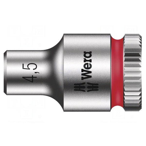 Nasadka sześciokątna typu HEX o rozmiarze 4,5 mm przeznaczona jest do współpracy z uchwytami o gnieździe 1/4". Element o długości 23 mm wykonany został ze stali chromowo-wanadowej i wykończony powłoką chromową.