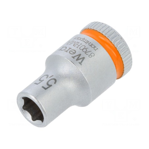 Nasadka sześciokątna typu HEX o rozmiarze 5,5 mm została wykonana ze stali chromowo-wanadowej. Element posiada wykończenie chromowane, które chroni materiał przed korozją. Narzędzie przeznaczone jest do współpracy z uchwytami o rozmiarze 1/4 cala.