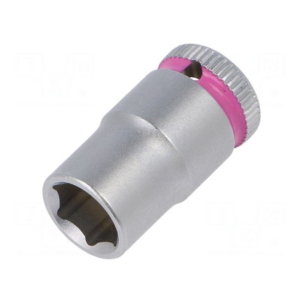 Nasadka 6-kątna typu nasadowego o rozmiarze gniazda 8mm przeznaczona jest do pracy z uchwytami 1/4". Element charakteryzuje się długością wynoszącą 23mm i został wykonany ze stali chromowo-wanadowej z wykończeniem chromowanym.