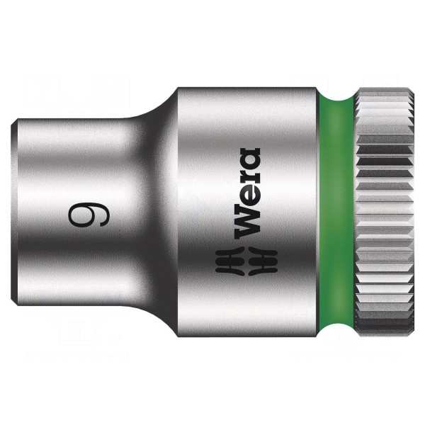 Nasadka nasadowa 6-kątna o rozmiarze gniazda 9mm przeznaczona jest do współpracy z uchwytami o rozmiarze 3/8". Element wykonano ze stali chromowo-wanadowej, która została zabezpieczona warstwą chromu.