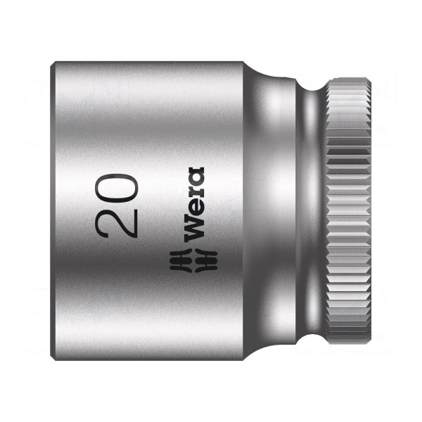 Nasadka 6-kątna typu nasadowego o rozmiarze gniazda 20 mm przeznaczona jest do pracy z uchwytami o rozmiarze 3/8". Element wykonany został ze stali chromowo-wanadowej, a jego zewnętrzna powierzchnia została wykończona chromowaniem.