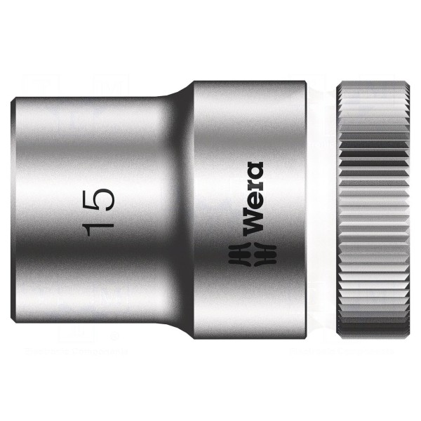 Nasadka 6-kątna o rozmiarze 15mm przeznaczona jest do współpracy z uchwytami w rozmiarze 1/2". Narzędzie zostało wykonane ze stali chromowo-wanadowej i wykończone chromowaną powłoką dla zwiększenia odporności na zużycie.