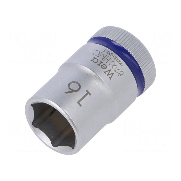 Nasadka 6-kątna o rozmiarze gniazda 16 mm przeznaczona jest do współpracy z uchwytami o rozmiarze 1/2". Element charakteryzuje się długością 37 mm, co pozwala na pracę w ograniczonej przestrzeni.