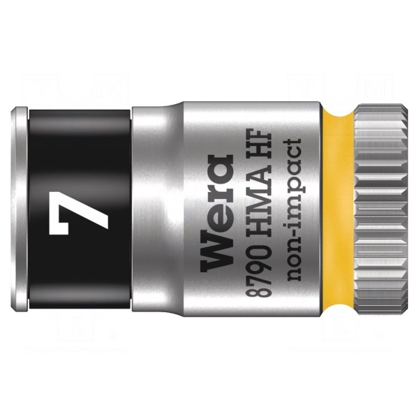 Nasadka 6-kątna typu nasadowego przeznaczona jest do pracy z gniazdami o rozmiarze 7 mm. Narzędzie zostało zaprojektowane do współpracy z uchwytami o rozmiarze 1/4 cala. Całkowita długość elementu wynosi 23 mm, co pozwala na sprawne wykonywanie prac w ograniczonej przestrzeni.