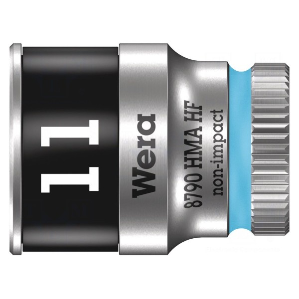 Nasadka 6-kątna o rozmiarze 11 mm przeznaczona jest do współpracy z uchwytami o gnieździe 1/4". Narzędzie zostało wykonane ze stali chromowo-wanadowej i wykończone warstwą chromu, co wpływa na jego trwałość. Całkowita długość elementu wynosi 23 mm.