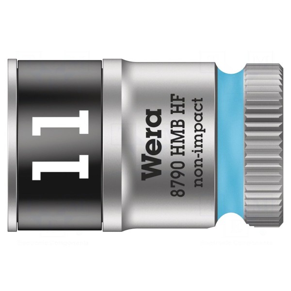 Nasadka 6-kątna o rozmiarze gniazda 11 mm przeznaczona jest do współpracy z uchwytami o napędzie 3/8". Produkt wykonany został ze stali chromowo-wanadowej i wykończony powłoką chromową dla zwiększenia trwałości. Całkowita długość elementu wynosi 29 mm.