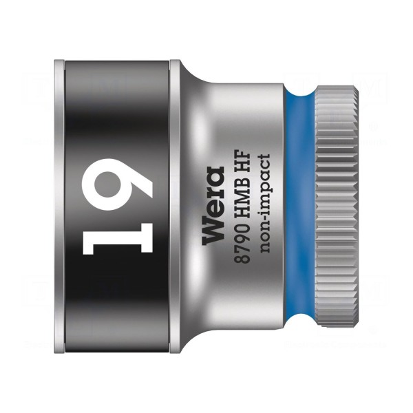 Nasadka 6-kątna o rozmiarze 19 mm przeznaczona jest do współpracy z uchwytami o rozmiarze 3/8". Element wykonany został ze stali chromowo-wanadowej, a jego zewnętrzna powierzchnia jest chromowana. Całkowita długość narzędzia wynosi 29 mm.