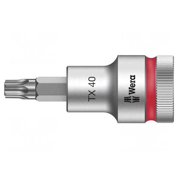 Nasadka typu Torx w rozmiarze TX40 przeznaczona jest do pracy z kluczami z gniazdem 1/2". Narzędzie charakteryzuje się długością wynoszącą 60mm oraz wyposażone zostało w funkcję przytrzymywania wkrętów.