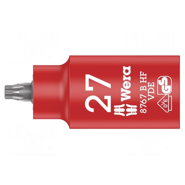 Nasadka izolowana typu Torx o rozmiarze grota TX27 przeznaczona jest do współpracy z napędami o rozmiarze gniazda 3/8". Narzędzie charakteryzuje się długością całkowitą wynoszącą 55mm oraz posiada konstrukcję z funkcją przytrzymywania śrub.