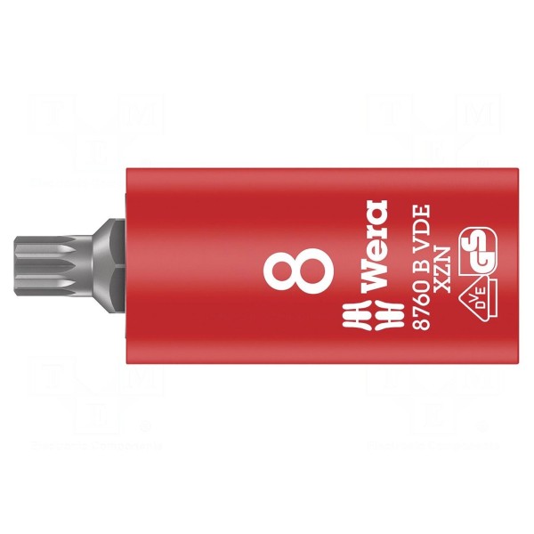 Nasadka spline 12-kątna w rozmiarze XZN M8 została zaprojektowana do prac w instalacjach elektrycznych pod napięciem do 1kV. Narzędzie jest kompatybilne z uchwytami o rozmiarze gniazda 3/8".