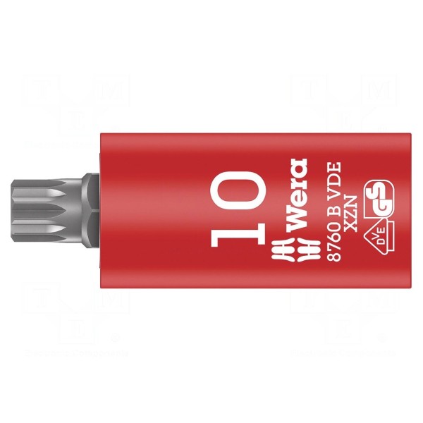 Nasadka typu spline o rozmiarze XZN M10 przeznaczona jest do prac wymagających izolacji elektrycznej do 1kV. Narzędzie wyposażone jest w gniazdo mocujące 3/8" i posiada 12-kątny profil roboczy.