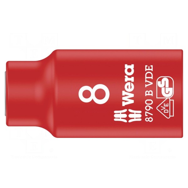 Izolowana nasadka 6-kątna przeznaczona jest do pracy z połączeniami śrubowymi o rozmiarze HEX 8 mm. Narzędzie wyposażone jest w gniazdo uchwytu o rozmiarze 3/8". Konstrukcja zapewnia dopasowanie do wymogów bezpieczeństwa podczas prac pod napięciem do 1kV AC.