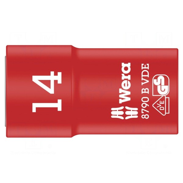 Nasadka izolowana typu 6-kątnego przeznaczona jest do współpracy z napędami o rozmiarze gniazda 3/8". Element charakteryzuje się rozmiarem roboczym HEX 14mm i całkowitą długością wynoszącą 46mm.