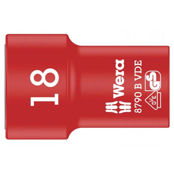 Nasadka izolowana typu 6-kątnego jest przeznaczona do prac pod napięciem do 1kV AC. Element posiada rozmiar gniazda HEX 18mm oraz mocowanie w standardzie 3/8".