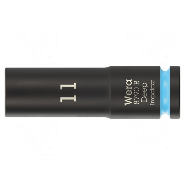 Nasadka udarowa o rozmiarze 11 mm wyposażona jest w profil 6-kątny. Narzędzie przeznaczone jest do współpracy z uchwytami o rozmiarze 3/8".