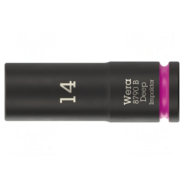 Nasadka udarowa o konstrukcji 6-kątnej przeznaczona do pracy z gniazdami HEX 14mm. Narzędzie zostało wykonane w wersji długiej o łącznej długości 63mm i posiada uchwyt w rozmiarze 3/8".